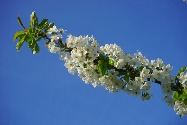 Keywords: cherry blossoms flowers white tree flowering twig branch bird cherry prunus avium prunus rose greenhouse rosaceae sweet cherry