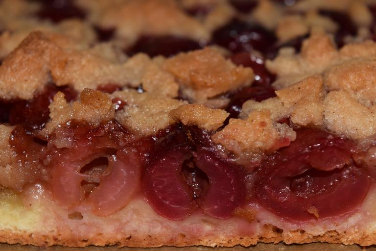 Keywords: cherry pie close sheet cake streusel cake sweet delicious dessert eat