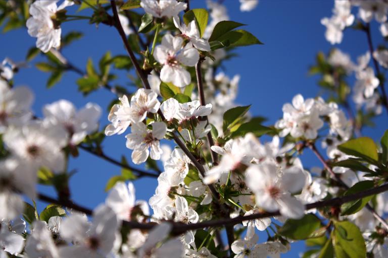 Keywords: cherry white flowers blue background white blue cherry blossom flower nature