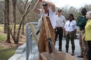 Keywords: outdoor Together with the South Fork Conservancy and the Greening Youth Foundation we're rolling out our Animal Olympics signs in English and Spanish at the Cheshire Farm Trail in Atlanta, Georgia. This is part of the South Fork Urban Wildlife Refuge Partnership. Here the group is doing their best Great Blue Heron yoga pose. Photo credit: Katherine Taylor, USFWS Together with the South Fork Conservancy and the Greening Youth Foundation we're rolling out our Animal Olympics signs in English and Spanish at the Cheshire Farm Trail in Atlanta, Georgia. This is part of the South Fork Urban Wildlife Refuge Partnership. Here the group is doing their best Great Blue Heron yoga pose. Photo credit: Katherine Taylor, USFWS