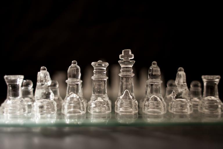 Keywords: chess pieces glass chessboard game strategy board pawn play competition board game