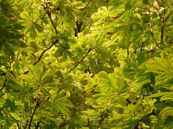 Keywords: chestnut buckeye tree leaves foliage green top aesthetic twig branches vielblättrig leaflets pinnate light nature sun autumn