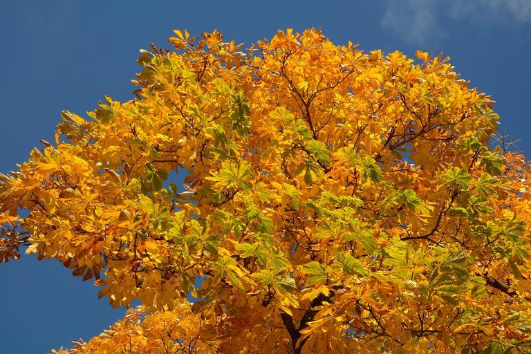 Keywords: chestnut leaves autumn fall color leaves tree chestnut chestnut tree golden autumn yellow yellowing colorful color sky golden