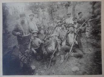 | Keywords: Chetnici s Georgi Zankov.JPG en Rebels On the photo Apostol Petkov Hr Chernopeev Mihail Chakov Georgi Zankov Stefan Chavdarov Dzhelyo voyvoda Atanas Bozukov and others bg Четници а снимката Апостол Петков Х исто Че нопеев ихайл Чаков Гео ги Занков Стефан Чавда ов Джельо войвода Атанас Бозуков и д уги Scanned from original; source Uploader's family archive author copyright holder Evgeni Zankov circa 1910 Anonymous-EU PermissionOTRS 2012080710008461 Georgi Zankov Hristo Chernopeev Mihail Chakov Stefan Chavdarov Anton Bozukov Apostol Petkov |
