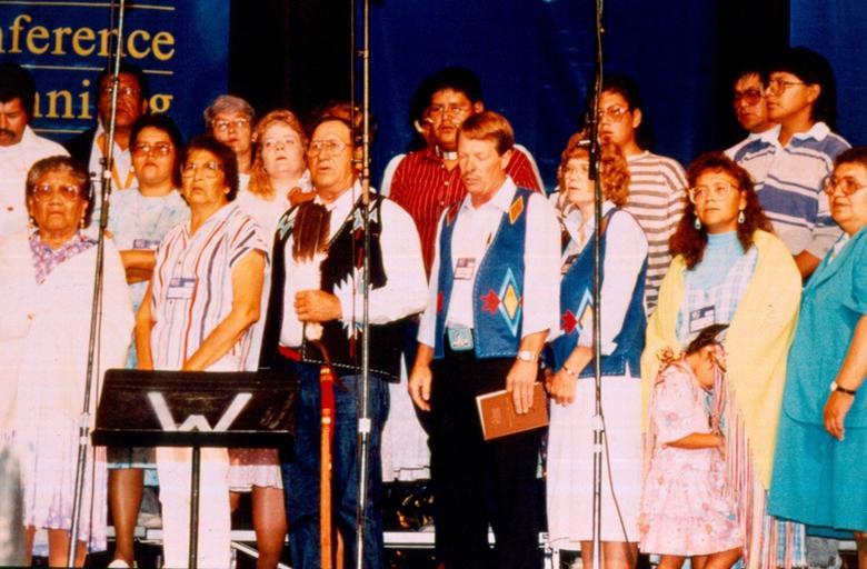 Keywords: northern cheyenne mennonite choir northerncheyennemennonitechoir mennonite world conference winnipeg manitoba canada mennoniteworldconferencewinnipegmanitobacanada people groupshot Caption: The Northern Cheyenne Mennonite Choir. Citation: Mennonite World Conference. Twelfth Mennonite World Conference, 1990, Winnipeg, Canada. Slides by T. Klassen; Script by John Dyck. X-9 Box 52 Folder 4 Slide 72. Mennonite Church USA Archives - Goshen. Goshen, Indiana. Caption: The Northern Cheyenne Mennonite Choir. Citation: Mennonite World Conference. Twelfth Mennonite World Conference, 1990, Winnipeg, Canada. Slides by T. Klassen; Script by John Dyck. X-9 Box 52 Folder 4 Slide 72. Mennonite Church USA Archives - Goshen. Goshen, Indiana. |