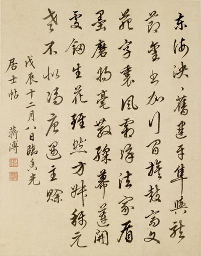 Keywords: Ch'iang P'u - Colophon Page of Album with Calligraphy - Walters 351962B.jpg between 1748 1749 ink paper cm 23 6 30 2 accession number 35 196 2B 32761 Sydney L Moss Ltd Oriental Art date and mode of acquisiton unknown Walters Art Museum 1994 by purchase Museum purchase W Alton Jones Foundation Acquisition Fund 1994 place of origin China Walters Art Museum license 2D Album of Twelve Landscapes with Matching Calligraphy Walters 35 196 Jiang Pu Media contributed by the Walters Art Museum needs category review |