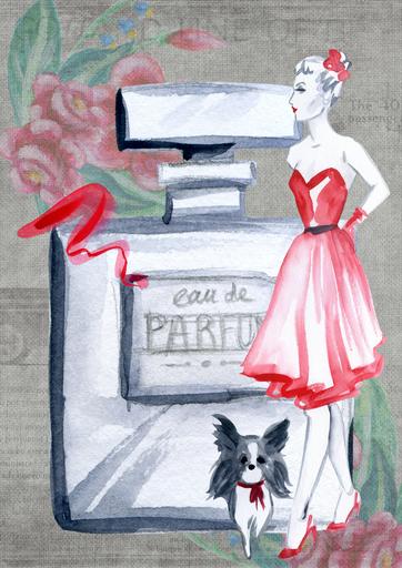 Keywords: chic retro perfume french girl lady woman design artwork watercolor vintage fashion garments trend elegant color old stylish shoes classic merchandise advertisement decoupage collage scrapbook art craft