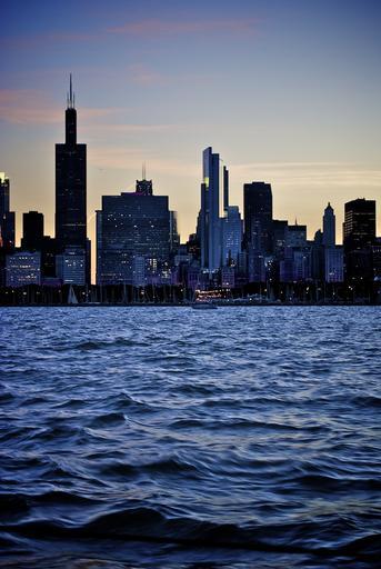 Keywords: chicago skyline lake city architecture cityscape downtown skyscraper urban building tower illinois landmark water sky travel michigan usa blue america night metropolitan reflection dusk tall