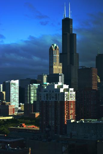 Keywords: chicago willis tower city downtown illinois usa urban architecture cityscape skyline skyscraper building willis office structure sky blue midwest sears scene tall illuminated landmark financial