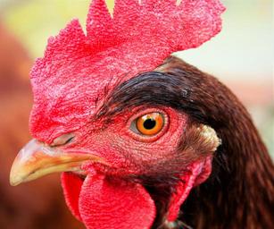 Keywords: chicken close-up color eye red