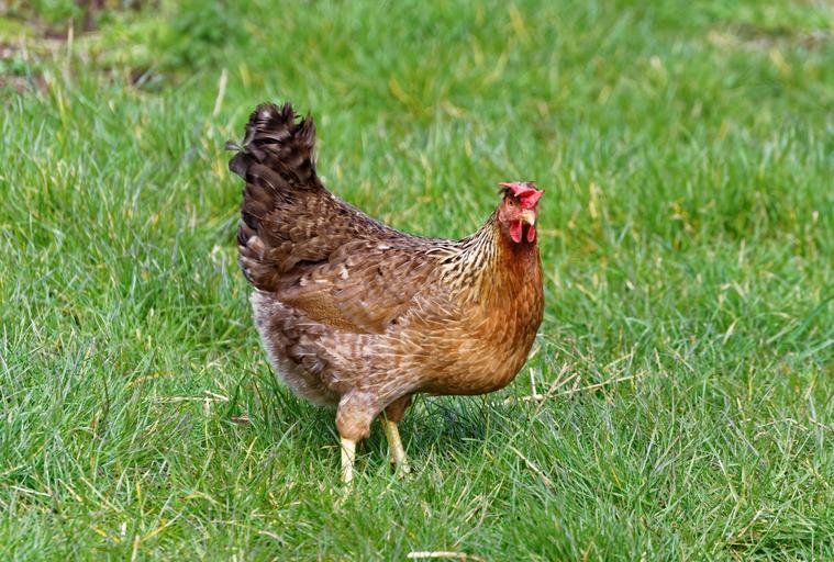 Keywords: chicken farm poultry nature hen livestock farming egg feather green grass
