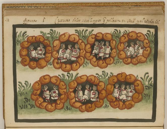| Keywords: Chicomoztoc- The Origins of the Tribes that Settled in or Close to Mexico WDL6717.png Artwork ru Това Хуан де около 1546 г около 1626 г fr Tovar Jean de 1546-1626 env en Tovar Juan de circa 1546-circa 1626 zh 胡安·德·托瓦尔,约 1546 年 - 约 1626 年 pt Tovar Juan de por volta de 1546-por volta de 1626 ar خوان دو توفار، حوالي 1546-حوالي 1626 es Tovar Juan de circa 1546-circa 1626 ru Чикомосток п оисхождение племен поселившихся в ексике или ядом с ней fr Chicomoztoc les origines des tribus qui s'installèrent à Mexico ou à proximité en Chicomoztoc The Origins of the Tribes that Settled in or Close to Mexico zh 奇科莫兹托克:定居 墨西哥或其附近的部落的起源 pt Chicomoztoc as origens das tribos que se instalaram em ou próximo do México ar تشيكوموستوك أصول القبائل التي استقرت في المكسيك أو بالقرب منها ru Кодекс Това а авто ом кото ого считается мексиканский иезуит XVI века Хуан де Това соде жит под обную инфо мацию об об ядах и це емониях ацтеков известных также как мешика Кодекс п оиллюст и ован 51 аква ельным исунком на полную ст аницу Рисунки в кото ых наблюдается значительное влияние пиктог афических укописей доколониальных в емен обладают исключительными художественными достоинствами Рукопись состоит из т ех азделов В пе вом азделе описана исто ия путешествий ацтеков до п ибытия испанцев Вто ой аздел п едставляющий собой иллюст и ованную исто ию ацтеков составляет основной объем укописи В т етьем азделе находится календа ь Това а а этой иллюст ации из вто ого аздела изоб ажен Чикомосток с мужчинами и женщинами внут и Чикомосток что означает семь пеще место откуда по п еданиям ацтеков они п ишли на языке науатль означало от или лоно В ацтекском мифе о сотво ении ми а на од мешика вышел из нед земли и основал Ацтлан откуда и пошло название ацтеки ; после чего они отп авились южнее в поисках знака кото ый указал бы им место их нового поселения <br> ифология ацтеков; Ацтеки; Ацтлан; Кодекс; Индейцы ексики; Ко енные на одности; езоаме ика; Кодекс Това а fr Le codex Tovar attribué à Jean de Tovar jésuite mexicain du XVI<sup>e</sup> siècle contient des informations détaillées sur les rites et les cérémonies des Aztèques également connus sous le nom de Mexicas Il est illustré de 51 aquarelles de la taille d'une page Fortement influencées par les manuscrits pictographiques de la période précontact ces peintures sont d'une qualité artistique exceptionnelle Le manuscrit est divisé en trois sections La première section contient une histoire des voyages des Aztèques avant l'arrivée des Espagnols La seconde section une histoire illustrée du peuple aztèque constitue la majeure partie du manuscrit La troisième section est constituée du calendrier de Tovar Cette illustration extraite de la seconde section représente Chicomoztoc ainsi que des hommes et des femmes Chicomoztoc qui signifie « sept cavernes » et que les Aztèques considéraient comme le lieu de leur origine était le mot nahuatl pour désigner la bouche ou le ventre Selon le mythe aztèque de la création les Mexicas quittèrent les entrailles de la terre et s'installèrent à Aztlan d'où ils tirent le nom d'Aztèque et lieu à partir duquel ils entreprirent une migration vers le sud à la recherche d'un signe leur indiquant où ils devaient à nouveau s'installer <br>Mythologie aztèque; Aztèques; Aztlan; Codex; Indiens du Mexique; Peuples autochtones; Méso-Amérique; Codex Tovar en The Tovar Codex attributed to the 16th-century Mexican Jesuit Juan de Tovar contains detailed information about the rites and ceremonies of the Aztecs also known as Mexica The codex is illustrated with 51 full-page paintings in watercolor Strongly influenced by pre-contact pictographic manuscripts the paintings are of exceptional artistic quality The manuscript is divided into three sections The first section is a history of the travels of the Aztecs prior to the arrival of the Spanish The second section an illustrated history of the Aztecs forms the main body of the manuscript The third section contains the Tovar calendar This illustration from the second section depicts Chicomoztoc with men and women Chicomoztoc which means seven caves the place from which the Aztecs believed they came was the Nahautl word for the mouth or womb In the Aztec myth of creation the Mexica left the bowels of the earth and settled in Aztlán from which they acquired the name Aztec and from where they undertook a migration southward in search of a sign for where they should settle once more <br>Aztec mythology; Aztecs; Aztlán; Codex; Indians of Mexico; Indigenous peoples; Mesoamerica; Tovar Codex zh 这 托瓦尔手抄 被认为是 16 世纪墨西哥 稣会士胡安·德·托瓦尔 Juan de Tovar ,其中包含关于阿兹特克(也称墨西卡)礼仪和仪式的详细信息 手抄 中 51 整页的水彩画 这些画 受到与