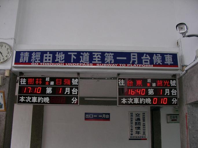 Keywords: Chihshang Station LED Monitor.JPG en The LED monitor in Chihshang Station zh-tw æ± ä¸Šè»Šç«™å…§çš„åˆ—è»Šè³‡è¨Šé¡¯ç¤ºå™¨ã ‚ Own Mike841125 2008-08-04 TRA Chishang Station