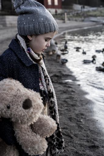 Keywords: child girl cute kid little female smile childhood face young portrait people caucasian person children daughter happiness youth outdoor eyes by the sea plush dog feeding the birds
