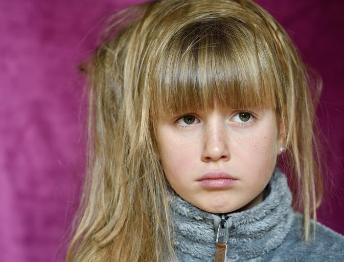 Keywords: child girl face long hair view expression pout