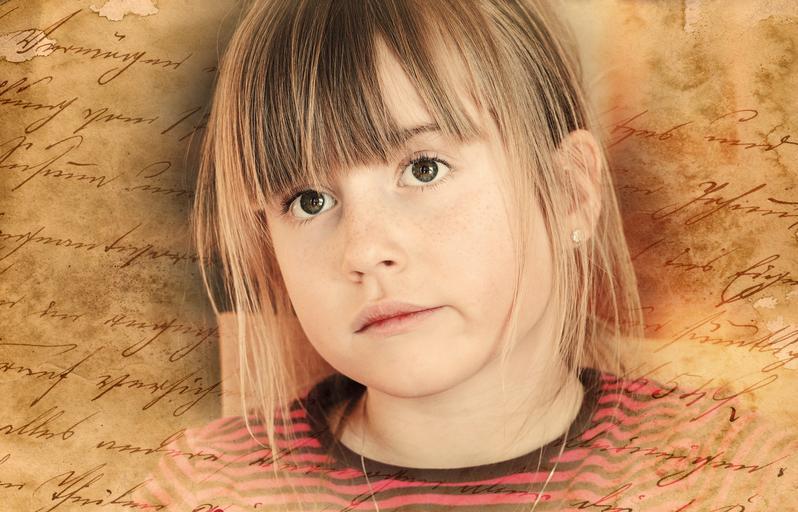 Keywords: child girl face portrait view retro look