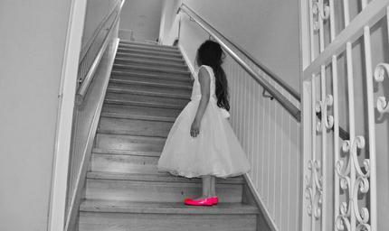 Keywords: child girl little girl portrait colors pink stairs