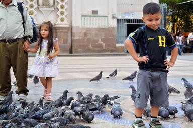 Keywords: child girl plaza pigeons church the pains