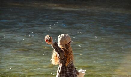 Keywords: child girl water stone