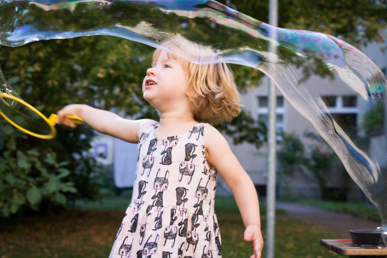 Keywords: child soap bubbles play outside make soap bubbles children's girl plays