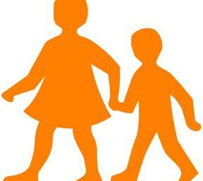 Keywords: children brother sister holding hand walking save trust silhouette orange together family