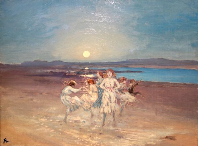 Keywords: Children Dancing on the Strand by AE (George William Russell), Ireland, 1914, oil on canvas - Chazen Museum of Art - DSC02714.JPG en Exhibit in the Chazen Museum of Art University of Wisconsin-Madison Madison Wisconsin USA This artwork is old enough so that it is in the public domain Photography was permitted in the museum without restriction 2013-07-21 14 37 15 own Daderot PD-old-70 cc-zero European paintings in the Chazen Museum of Art Uploaded with UploadWizard George William Russell |
