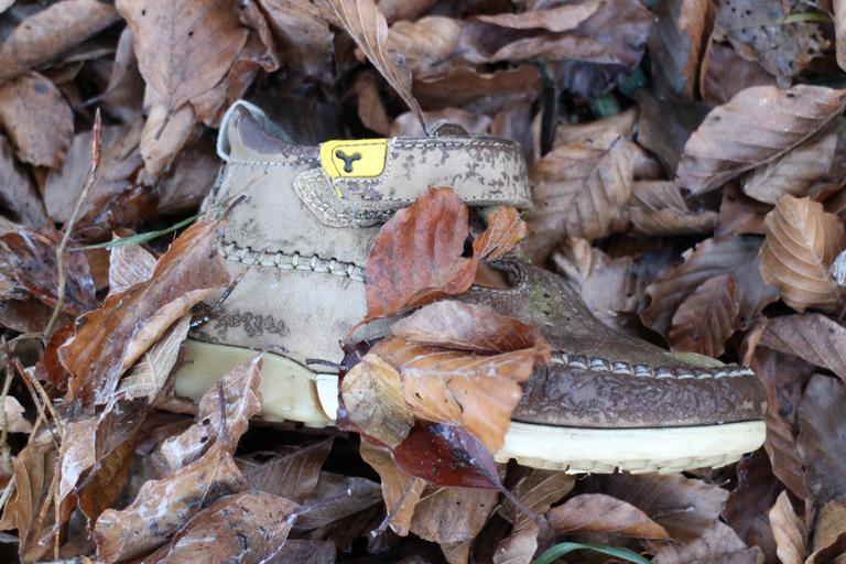 Keywords: children's shoe shoe individually nature forest child clothing foot small worn lost adrift leather shoes found