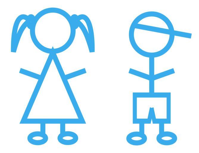 Keywords: children stick figures girl boy blue cap pigtails dress