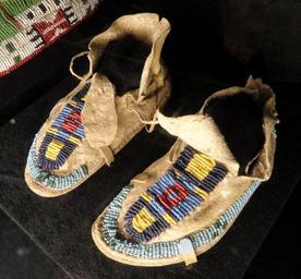 Keywords: Children's Moccasins, c. 1875, Crow - Houston Museum of Natural Science - DSC02110.JPG Exhibit in the Houston Museum of Natural Science Houston Texas USA Photography was permitted in the museum without restriction Daderot 2012-10-22 16 23 33 Daderot cc0 cc0 Indigenous art in the Houston Museum of Natural Science Moccasins in museums Crow tribe |