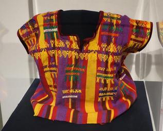 Keywords: Child's or saint's huipil, Kaqchikel Maya, San Juan Sacateqequez, mid 20th century, cotton and silk - Textile Museum of Canada - DSC01144.JPG en Exhibit in the Textile Museum of Canada 55 Centre Avenue Toronto Ontario Canada Photography was permitted in the museum without restriction 2013-07-04 14 46 26 own Daderot cc-zero Uploaded with UploadWizard Maya textiles in the Textile Museum of Canada |