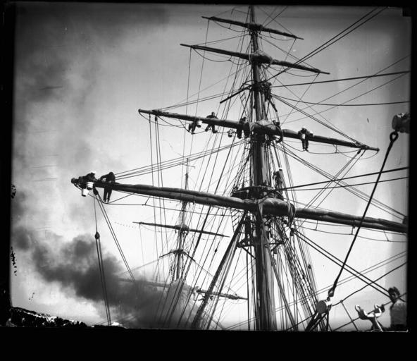 | Keywords: samuel j hood collection samueljhoodcollection baquedano corvette sydney harbour sydneyharbour harbour scenes harbourscenes circular quay circularquay people chilean “naval vessel” sailor sailors blackandwhite monochrome pylon photo border power line abstract lines cable serene texture telephone wire boat vehicle outdoor black and white The GENERAL BAQUEDANO moored at East Circular Quay on 16 July 1931 and the crew spent two weeks in Sydney. The ship had previously visited Sydney in 1903. In 1931, the vessel was considered obsolete as a fighting ship, but very useful as a training vessel. In naval categories, GENERAL BAQUEDANO is known as a corvette (in Spanish corbeta), which is defined as a flush-decked ship with one tier of guns, a type replaced by the modern cruiser. Fully-rigged, the vessel was fitted with triple-expansion engines as auxiliary, and had a displacement of 2,330 tons. The visit attracted significant public interest and the daily activities of the Chileans were reported in the Sydney Morning Herald. The crew played a soccer match against members of the HMAS CANBERRA crew, laid a wreath at the Martin Place cenotaph, displayed their rigging skills while aloft and opened their vessel to the public. Captain Alvarez also hosted visits by the Governor of NSW Sir Phillip Game, the Premier of NSW and the Lord Mayor. The departure of GENERAL BAQUEDANO from Sydney Harbour was quite eventful, with one rating attempting to desert the ship and swim ashore, two sailors being left at the dock and transported to the vessel by police launch and another bewildered Chilean was found wandering the streets. He was later reunited with his fellow sailors in Auckland after transport was arranged on a departing cargo ship. This photo is part of the Australian National Maritime Museum’s Samuel J. Hood Studio collection. Sam Hood (1872-1953) was a Sydney photographer with a passion for ships. His 60-year career spanned the romantic age of sail and two world wars. The photos in the collection were taken mainly in Sydney and Newcastle during the first half of the 20th century. The ANMM undertakes research and accepts public comments that enhance the information we hold about images in our collection. This record has been updated accordingly. Photographer: Samuel J. Hood Studio Collection Object no. 00034751 The GENERAL BAQUEDANO moored at East Circular Quay on 16 July 1931 and the crew spent two weeks in Sydney. The ship had previously visited Sydney in 1903. In 1931, the vessel was considered obsolete as a fighting ship, but very useful as a training vessel. In naval categories, GENERAL BAQUEDANO is known as a corvette (in Spanish corbeta), which is defined as a flush-decked ship with one tier of guns, a type replaced by the modern cruiser. Fully-rigged, the vessel was fitted with triple-expansion engines as auxiliary, and had a displacement of 2,330 tons. The visit attracted significant public interest and the daily activities of the Chileans were reported in the Sydney Morning Herald. The crew played a soccer match against members of the HMAS CANBERRA crew, laid a wreath at the Martin Place cenotaph, displayed their rigging skills while aloft and opened their vessel to the public. Captain Alvarez also hosted visits by the Governor of NSW Sir Phillip Game, the Premier of NSW and the Lord Mayor. The departure of GENERAL BAQUEDANO from Sydney Harbour was quite eventful, with one rating attempting to desert the ship and swim ashore, two sailors being left at the dock and transported to the vessel by police launch and another bewildered Chilean was found wandering the streets. He was later reunited with his fellow sailors in Auckland after transport was arranged on a departing cargo ship. This photo is part of the Australian National Maritime Museum’s Samuel J. Hood Studio collection. Sam Hood (1872-1953) was a Sydney photographer with a passion for ships. His 60-year career spanned the romantic age of sail and two world wars. The photos in the collection were taken mainly in Sydney and Newcastle during the first half of the 20th century. The ANMM undertakes research and accepts public comments that enhance the information we hold about images in our collection. This record has been updated accordingly. Photographer: Samuel J. Hood Studio Collection Object no. 00034751 |