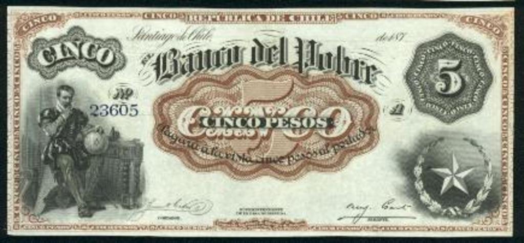 | Keywords: ChilePS362r-5Pesos-1877-donated f.jpg 5 чилийских песо егиональный выпуск банка Banco del Pobre Аве с Пе вый губе нато Чили Пед о де Вальдивия ассмат ивает глобус Banco del Pobre 1877 http //www banknoteworld com/notedir/mappage html PD-old-100 currency Original upload log ru wikipedia ftcg page ru wikipedia ChilePS362r-5Pesos-1877-donated_f jpg wikitable - 19 13 26 March 2008 435 × 202 27 316 bytes Vizu w ru <nowiki> Описание Авто В емя создания Источник </nowiki> Banknotes of Chile 1877 banknotes Banknotes with a face value of 5 Pedro de Valdivia |