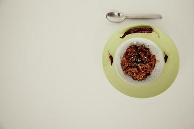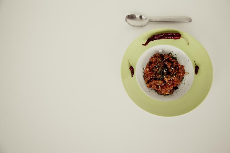 Keywords: chili con carne sharp minced meat mexican eat plate spoon food lunch nutrition delicious cutlery