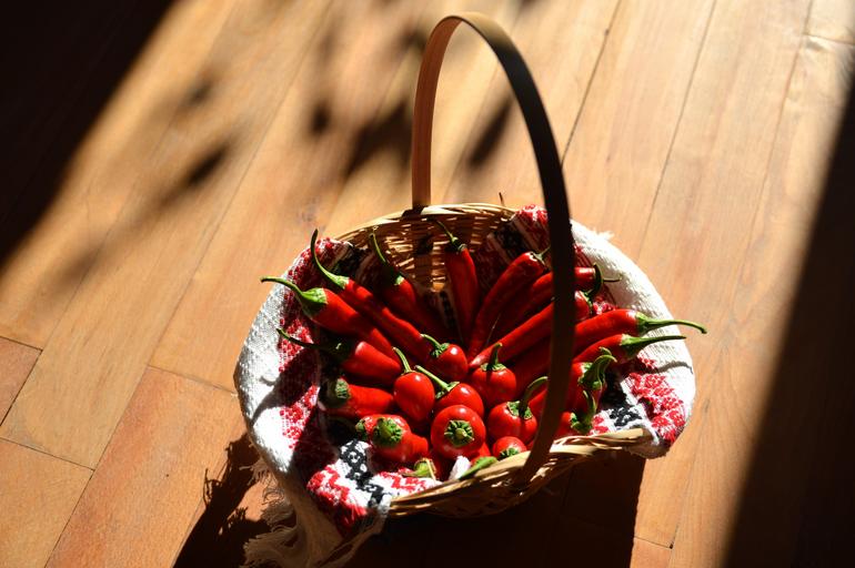 Keywords: chilli pepper red chilli wicker basket plant organic heat ingredient spicy natural food hot vegetable