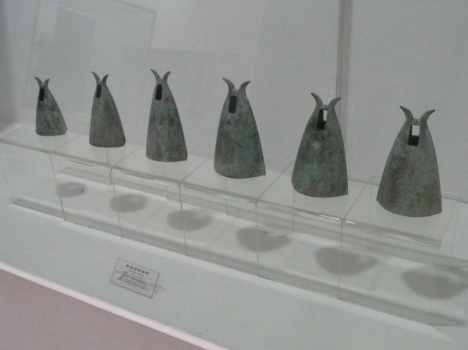 Keywords: Chimes (bronze, Spring and Autumn) - Yunnan Provincial Museum - DSC02260.JPG Exhibit in the Yunnan Provincial Museum Kunming Yunnan China I took this photograph 2011-08-09 01 05 31 Daderot Public domain Antiquities in the Yunnan Provincial Museum |