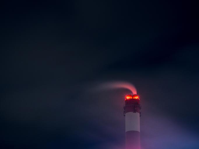 Keywords: chimney smoke power plant industrial night sky dark evening