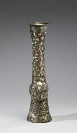 Keywords: Chimú - Libation Vessel (Qero) - Walters 2009205.jpg The qero was the principal ritual libation vessel among the peoples of ancient Peru Bolivia and northern Chile This distinctive vessel form has ancient origins but became particularly prevalent during the Early Intermediate Period 100-600 CE This dynamic time witnessed socio-political intensification and an increase in the numbers of political elites throughout the Andes with an interconnected multiplication of aristocratic ceremonial events that emphasized hierarchy and authority The ritual consumption of chicha maize beer the mildly alcoholic beverage traditionally served in qeros was integral to these politically charged social events This libation vessel diverges from the typical qero's beaker form The precious metal material also segregates its from the usual ritual drinking vessel made of clay or wood The Chimú qero is unusually tall and embellished with a frontal face AD 1000-1470 Late Intermediate silver alloy cm 42 9 11 1 11 8 accession number 2009 20 5 80160 Ron Messick Fine Arts Santa Fe New Mexico date and mode of acquisition unknown John G Bourne 1990s by purchase Walters Art Museum Gift of John Bourne 2009 place of origin North Coast Walters Art Museum license Pre-Columbian art in the Walters Art Museum Chimu metalwork Libation vessels Media contributed by the Walters Art Museum needs category review Ceremonial vessels |