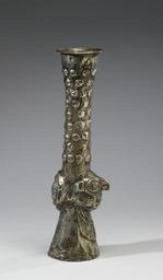 Keywords: Chimú - Libation Vessel (Qero) - Walters 2009205 - Right Side.jpg The qero was the principal ritual libation vessel among the peoples of ancient Peru Bolivia and northern Chile This distinctive vessel form has ancient origins but became particularly prevalent during the Early Intermediate Period 100-600 CE This dynamic time witnessed socio-political intensification and an increase in the numbers of political elites throughout the Andes with an interconnected multiplication of aristocratic ceremonial events that emphasized hierarchy and authority The ritual consumption of chicha maize beer the mildly alcoholic beverage traditionally served in qeros was integral to these politically charged social events This libation vessel diverges from the typical qero's beaker form The precious metal material also segregates its from the usual ritual drinking vessel made of clay or wood The Chimú qero is unusually tall and embellished with a frontal face AD 1000-1470 Late Intermediate silver alloy cm 42 9 11 1 11 8 accession number 2009 20 5 80160 Ron Messick Fine Arts Santa Fe New Mexico date and mode of acquisition unknown John G Bourne 1990s by purchase Walters Art Museum Gift of John Bourne 2009 place of origin North Coast Walters Art Museum license Libation vessels Pre-Columbian art in the Walters Art Museum Chimu metalwork Media contributed by the Walters Art Museum needs category review Ceremonial vessels |