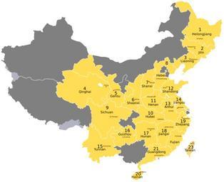 Keywords: China provinces numbered.svg A SVG version of en File China provinces numbered png base on File China provinces numbered with regional colors svg Yellow - Provinces of the People's Republic of China Yellowish - Dispute province of Taiwan Since its founding in 1949 the People's Republic of China has considered Taiwan Province to be its 23rd province even though it has never controlled any part of Taiwan The Republic of China currently controls this area which consists of Taiwan island and the Pescadores The ROC also controls one county of Fujian or Fukien province Jinmen Kinmen ; and part of a second county Lienchiang Dark Gray - Other Province level-divisions Autonomous regions Municipalities and Special Administrative Regions Gray - Disputed territories own 2009-07 en User ASDFGH Language-neutral maps of China Administrative maps of China SVG language-neutral maps SVG maps of China Maps numbering |