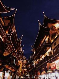MAKE A MEME View Large Image china shanghai look up city god temple night light old buildings