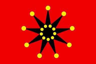 Keywords: Chinese-army Wuhan flag (1911-1928) 18 dots.svg The banner of the Wuchang uprising zh 武昌起义 of October 10 1911 subsequently used as the flag of the army of the Republic of China ca 1913-1928 It appears on many varieties of Chinese currency issued during the 1910's and 1920's This image shows a variant of the flag with 18 yellow dots; for a variant with 19 dots see Image Chinese-army Wuhan flag 1911-1928 19 dots svg Own work based on various depictions including Image Republic of China Flags jpg ; see also Image WuchangUprising jpg This SVG file has been converted from the following PostScript code <pre> 306 396 translate 14 dup scale 94 0 0 setrgbcolor 19 5 13 25 moveto -39 0 rlineto 0 -26 rlineto 39 0 rlineto fill 0 1 8 pop 0 setgray -1 763287 0 moveto 0 10 lineto 1 76327 0 lineto fill 1 94 0 setrgbcolor 0 10 95 0 360 arc fill 40 rotate for 20 rotate 0 1 8 pop 0 2 7 0 633333 0 360 arc fill 40 rotate for showpage EOF</pre> 2007 AnonMoos v fl f insignia Army flags Black red yellow flags Flags of the Republic of China Beiyang Government Flags with one nine-pointed star centered Flags with one black star Flags with yellow disks Images with PostScript source code SVG flags - historical of China SVG flags - military of China War flags China 3 |