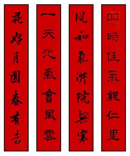 MAKE A MEME View Large Image Chinese calligraphy x4.png 2005-12-24 own assumed Nécropotame~commonswiki Par Nécropotame<br/> Source Image Wall's chinese calligraphy jpg Atelier graphique Meaning First I think they should be read by 1 3 and 2 4 1-四時佳氣親仁里 ...