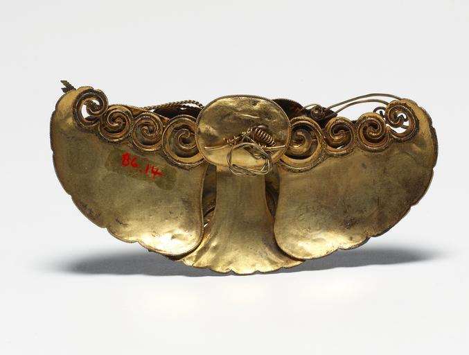 | Keywords: Chinese - Hair Ornament - Walters 8614 - Back.jpg This pair of ornaments with Walters 86 1 and headdress Walters 86 3 were likely once worn by the empress dowager the effective ruler of China during the later years of the Qing Dynasty It is an exquisite example of Chinese decoration and the symbolism used to express one's rank The small phoenixes emerging from the surface represent the empress while the myriad of pearls and gemstones mark this piece as something special for the adornment of the highest ranking woman in Chinese society The brilliant blue feathers of the kingfisher give these accessories an eye-catching quality that anyone interested in being recognized would certainly embrace between 1800 1900 gilded copper alloy kingfisher feathers cm 4 5 9 6 accession number 86 14 38193 Miss Ina B Paul date and mode of acquisition unknown Walters Art Museum Gift of Miss Ina B Paul 1963 Bedazzled 5 000 Years of Jewelry from the Walters Art Museum Frist Center for the Visual Arts Nashville; The John and Mable Ringling Museum of Art Sarasota; The Walters Art Museum Baltimore 2006-2009 place of origin China Walters Art Museum license Art of China in the Walters Art Museum Jewellery in the Walters Art Museum Media contributed by the Walters Art Museum needs category review |