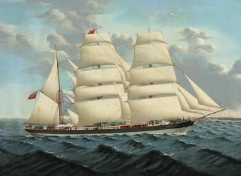 | Keywords: Chinese School - The iron barque Gwrtheyan Castle at sea.jpg century 19 This vessel was built in Sunderland in 1876 for R Thomas Co of Carnaervon 1878 oil canvas cm 44 4 61 accession number http //www christies com/lotfinder/LotDetailsPrintable aspx intObjectID 4987379 Christie ™s object history sold at Christie ™s New York 2007 11 14 Lot 93 credit line 1 christies online 4987379 2 http //www bonhams com/auctions/15150/lot/954/ Bonhams PD-Art-100 Gwrtheyrn Castle ship 1876 19th-century sailing ships in paintings Historical images of square-riggers under sail Images from Bonhams |