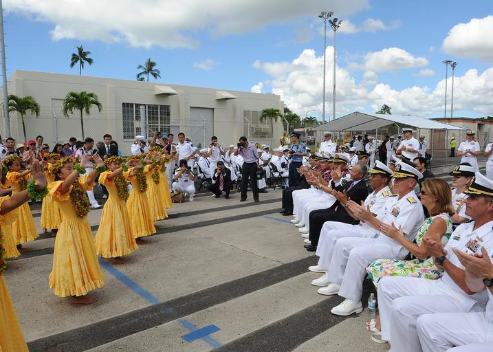 Keywords: Chinese ships visit Pearl Harbor-Hickam 130906-N-ZK021-010.jpg en U S and Chinese leaders watch as Keiki Hula dancers perform during an arrival ceremony for three People's Liberation Army-Navy ships Luhu-class destroyer Qingdao DDG 113 Jiangkai-class frigate Linyi FFG 547 and a Fuqing-class fleet oiler as they arrive in Hawaii for a scheduled port visit Over the weekend Chinese and U S leaders will conduct dialogues to build confidence and mutual understanding between the two nations The port visit is part of the U S Navy's ongoing effort to maximize opportunities for developing relationships with foreign navies to build trust encourage multilateral cooperation enhance transparency and avoid miscalculation in the Pacific U S Navy photo by Mass Communication Specialist 2nd Class Nardel Gervacio/Released 2013-09-06 Petty Officer 2nd Class Nardel Gervacio https //www dvidshub net/image/1011912 130906-N-ZK021-010 2013-09-06 22 57 JOINT BASE PEARL HARBOR-HICKAM HI US PD-USGov-Military-Navy 2013 in Pearl Harbor People at Joint Base Pearl Harbor-Hickam Images from DoD uploaded by Fæ |