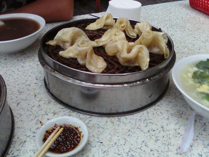 | Keywords: Chinese Steamed Dumplings.jpeg en Chinese steamed dumplings with chili oil for dipping The dumplings contain only a pork filling This is the common style eaten in northern Anhui province Fuyang city Anhui province China 2014-06-25 own Huihermit other versions cc-zero Dumplings of China Uploaded with UploadWizard |