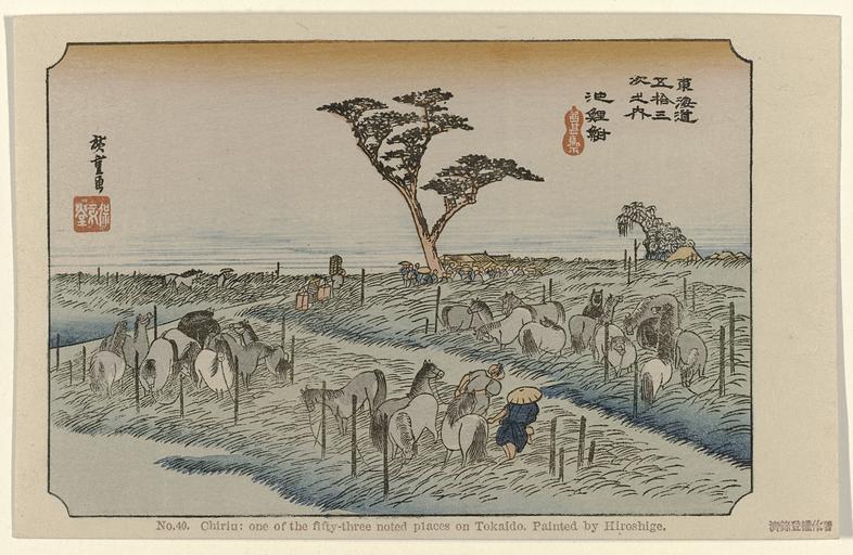 Keywords: Chiryu-Rijksmuseum RP-P-2010-310-95-40.jpeg accession number RP-P-2010-310-95-40 Utagawa died 1858; Fujisawa Bunjirô Fujisawa BunjirôHiroshige I credit line nl Paarden rusten in een wei en worden verzorgd door bedienden Label Line mentioned on object Hiroshige I Utagawa 1797 - 1858 1906 kleurenhoutsnede; lijnblok in zwart met kleurblokken Collection prenten; Japan collectie kaart Height mm 90 kaart Width mm 141 exhibition history cardboard object history Acquisition 2009-10-13 object type PD-US PD-old Data and photography rights All data and all images made available through the API are either in the public domain or are subject to a CC0 license https //www rijksmuseum nl/en/api/terms-and-conditions-of-use cc-zero place of creation Japan http //www rijksmuseum nl/collectie/RP-P-2010-310-95-40 http //hdl handle net/10934/RM0001 COLLECT 490338 handle Chiryu Uploaded with GWToolset Rijksmuseum RP-P-2010-310-95-40 http //www rijksmuseum nl/media/assets/RP-P-2010-310-95-40 Images uploaded by Fæ Japanese 20th-century prints in the Rijksmuseum Amsterdam Images from the Rijksmuseum |