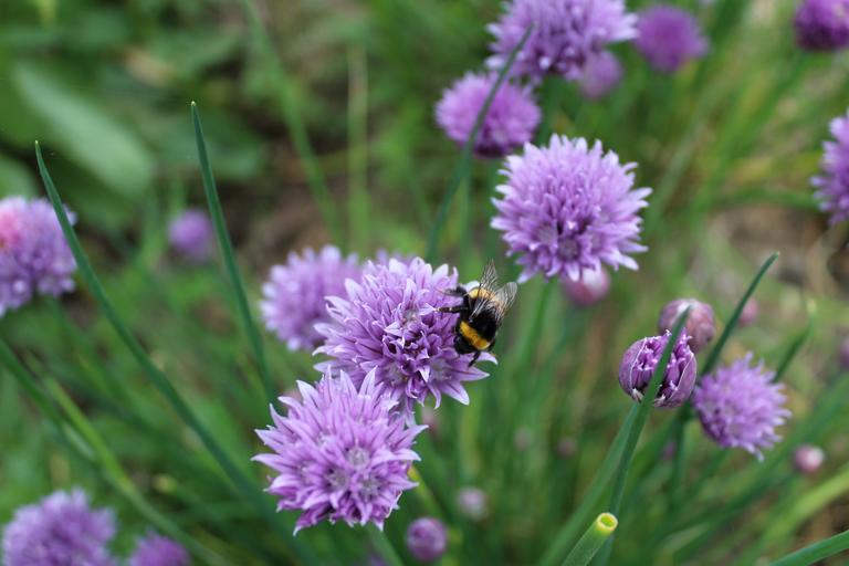 Keywords: chives aromatic plant chive flower herbs bee insect garden