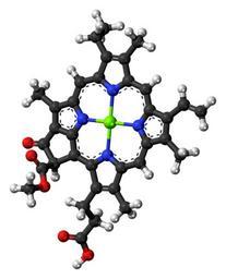 Keywords: Chlorophyll-c1-3D-balls.png Ball-and-stick model of the chlorophyll c1 molecule a less common form of chlorophyll a brown pigment that some algae use to support photosynthesis Colour code 505050 Carbon C black<br> F0F0F0 Hydrogen H white<br> F51E1E Oxygen O red<br> 3C50FA Nitrogen N blue<br> 89FF00 Magnesium Mg green<br> 2011-04-04 own DS Visualizer Jynto talk Space-filling version cc-zero Chlorophyll Images by Jynto Ball-and-stick models |
