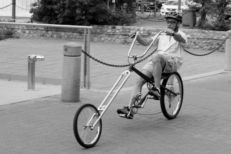 Keywords: blackandwhite black white bw monochrome street streetphotography downtown canada britishcolumbia bc okanagan kelowna chopper bike bicycle man male guy person summer